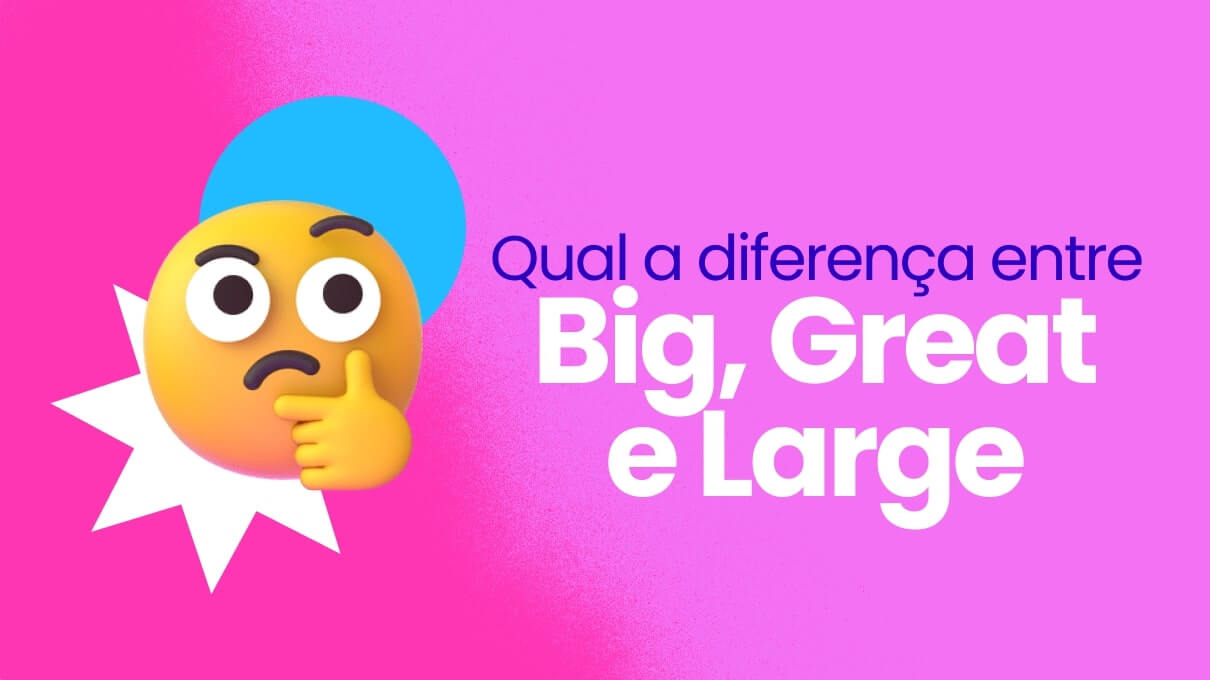 As palavras “Big”, “Great” e “Large” possuem usos distintos em inglês. Elas são empregadas de formas diferentes, seja em contextos formais ou para expressar tamanho ou excelência. Confira quando usar cada uma e fale com a desenvoltura de um nativo!